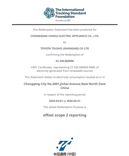 繼我司獲得市級綠色工廠后,配合DENSO碳中和規(guī)劃,我司已獲得I-REC證書,并購買了覆蓋公司電力以外排碳量的碳積分?jǐn)?shù)量。